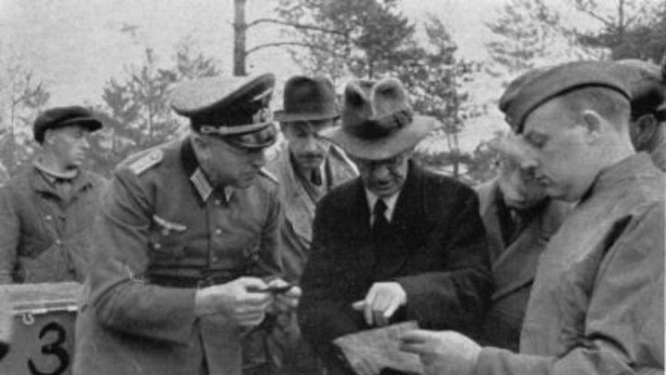 Były premier Polski Leon Kozłowski podczas identyfikacji zwłok polskich oficerów w Katyniu.