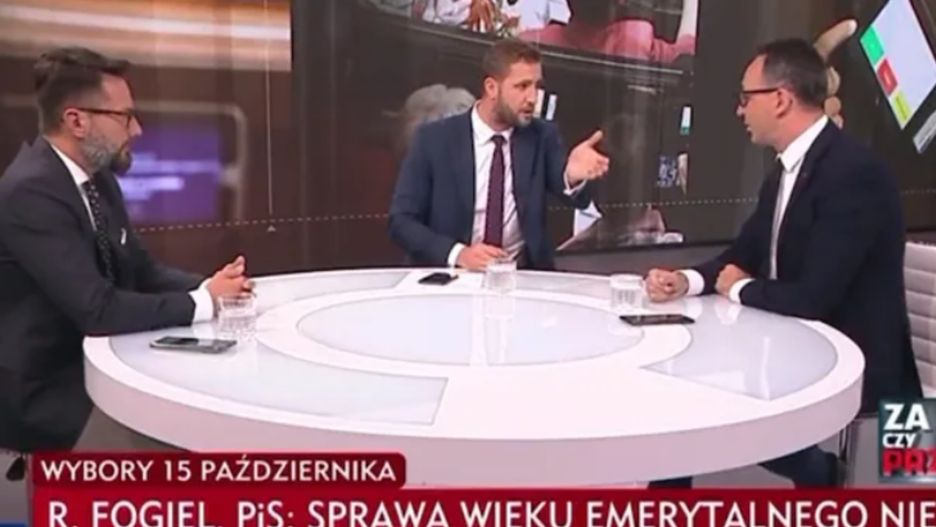 Poszło o sugestię Kłeczka, zgodną skądinąd z kampanijną narracją PiS, że Donald Tusk działając pod dyktando Niemiec, konsultował z kanclerz Angelą Merkel podwyższenie wieku emerytalnego. Gospodarz programu dopytywał przedstawiciela ówczesnego koalicjanta PO o rzekome ustalenia Tuska w tej sprawie.
