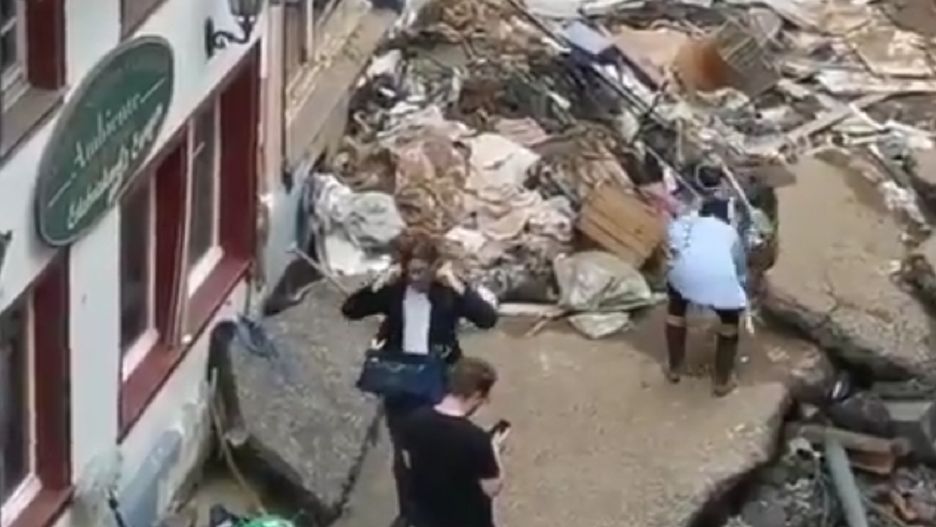 Prezenterka pokazała materiał z miasta Bad Muenstereifel, gdzie wystąpiła całkowicie pobrudzona błotem. Opowiadała o tragedii, jaka nawiedziła Niemcy i o cierpiących ludziach, którzy utracili wszystko, co mieli. Wzywała widzów, aby również włączyli się do pomocy.