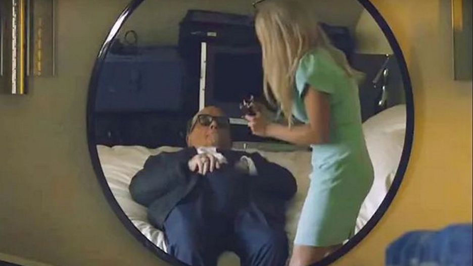 Giuliani, wraz z atrakcyjną aktorką, znalazł się bowiem w hotelowej sypialni. Ukryta kamera zarejestrowała, jak polityk leży na łóżku, dotyka dziennikarkę po biodrze, a w okolicach jego paska u spodni dzieją się "dziwne" rzeczy. W tym momencie do pokoju wpada Borat (Sacha Baron Cohen) i krzyczy: "Ona ma tylko 15 lat, jesteś dla niej za stary. Weź mnie, weź mnie". Ale na ucieczce skompromitowanego polityka się nie skończyło.