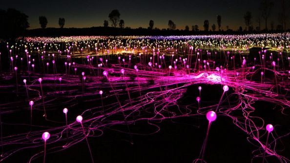 Bruce Munro to angielski artysta, który jest mistrzem zachwycających instalacji świetlnych w plenerze. W ramach jego ostatniego projektu powstało „Pole światła”. Artysta wybrał do tego przedsięwzięcia odludzie nieopodal australijskiego terenu Uluru będącego „duchowym centrum kraju”.