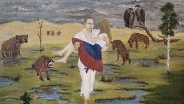 Dziecięca wyobraźnia w połączeniu z nieokiełznaną ekspresją artystyczną może być trudna do rozszyfrowania. To jedynie nasze domysły, ale prawdopodobnie na tym rysunku widzimy Władimira Putina z "udobruchanym" krokodylem. Spójrzcie, jakie maślane oczy bestia robi do prezydenta - tylko boski wybraniec może dokonać takich niesamowitości.