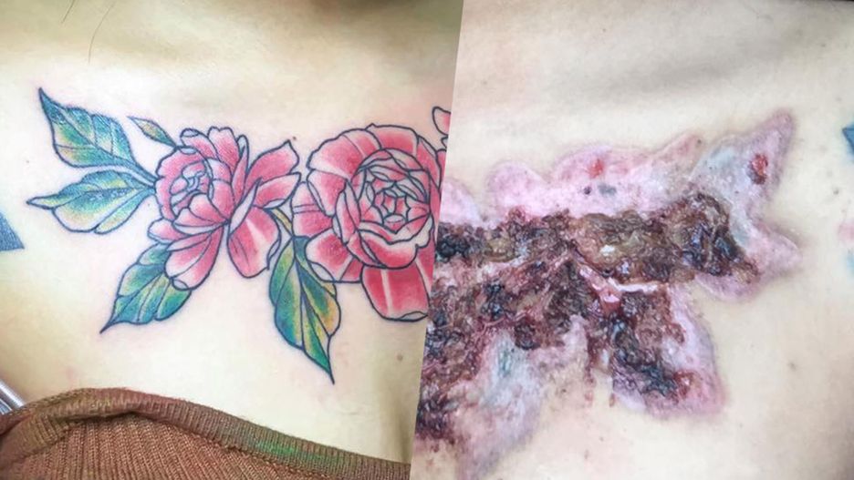 Już kilka dni po zabiegu skóra zaczęła ją mocno swędzieć i boleć. Tatuaż stracił kolor, a wokół niego pojawiła się dziwna obwódka.