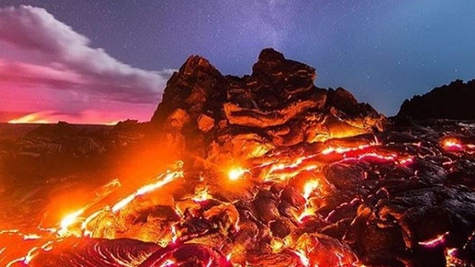 By zrobić wymarzone zdjęcie, fotograf Mike Mezeul II gotów był narazić się na poważne poparzenia. Mężczyzna wspiął się na plujący lawą wulkan położony w parku narodowym na Hawajach i zdołał uwiecznić na jednym ujęciu nie tylko magmę, ale również Księżyc, spadający meteoryt oraz Drogę Mleczną.