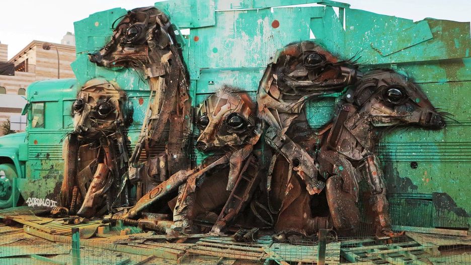 Portugalski artysta uliczny Bordalo II tworzy rzeźby w kształcie zwierząt ze... śmieci.
