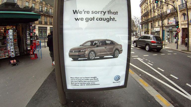 Z okazji konferencji klimatycznej COP21 w Paryżu rozklejono ponad 600 plakatów uderzających m.in. w Air France, Volkswagena i British Gas. Szczyt odbywa się w dniach od 30 listopada do 11 grudnia. 150 przywódców spotyka się w celu znalezienia sposobów na ograniczenie emisji gazów cieplarnianych.