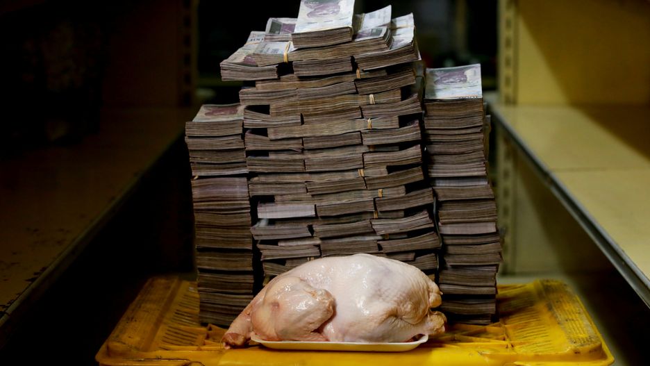 2,4 kg kurczaka = 14 600 000 boliwarów (8,17 zł)