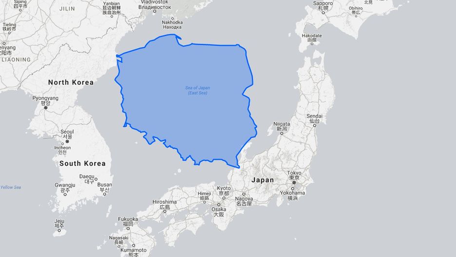 Tradycyjne mapy kłamią. Nie odwzorowują rzeczywistych rozmiarów krajów, które są zniekształcane przy przenoszeniu obrazu świata na płaską i prostokątną mapę. Postanowiliśmy sprawdzić, co się stanie, gdy "przeprowadzimy" Polskę w różne części świata, z zachowaniem rzeczywistych rozmiarów naszego kraju (uwzględniając krzywiznę kuli ziemskiej i ukształtowanie terenu) w odpowiednich proporcjach. Przyłożyliśmy polskie granice do innych państw (z wyjątkiem jednej wyspy i jednego stanu, które państwami nie są). To daje znakomite wyobrażenie o tym, jak naprawdę jest duża Polska. Na początek nasz kraj przy Korei Północnej, Południowej i Japonii.