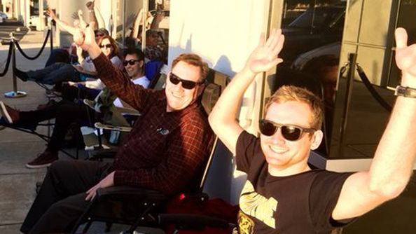 Ten fan na pewno jako pierwszy kupi nową Teslę. Ustawił się przed salonem już 48 godzin przed oczekiwaną premierą.