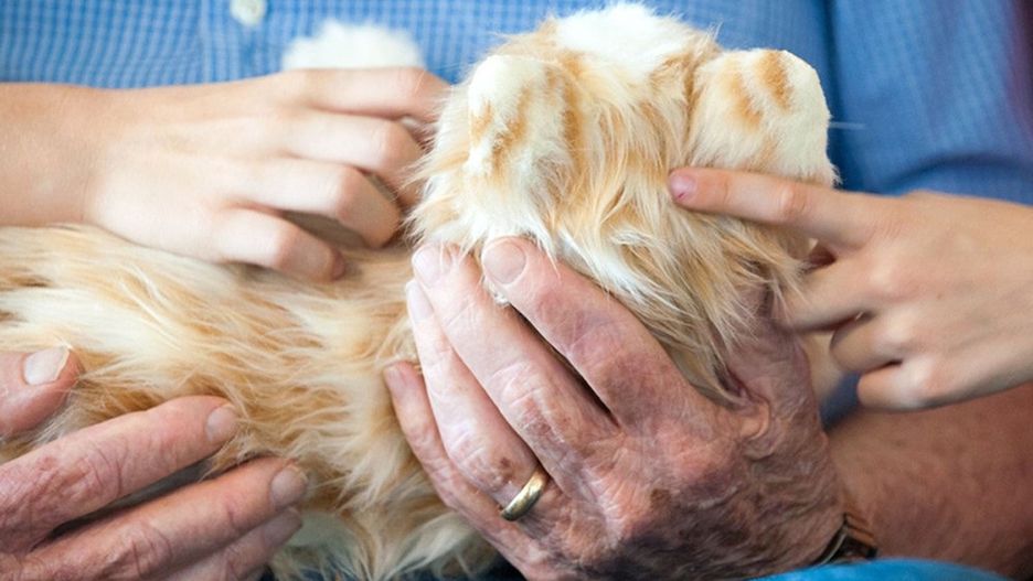 Kociak na szczęście nie ma ostrych pazurów, które mogłyby wyrządzić krzywdę osobie starszej. Podrapane ręce to już przeszłość.