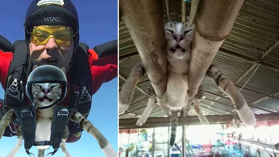 Fotka nieszczęśliwego kociaka zaklinowanego między rurami pobudziła wyobraźnię kreatywnych internautów, którzy natychmiast przystąpili do ataku. Zobaczcie jej najzabawniejsze przeróbki.