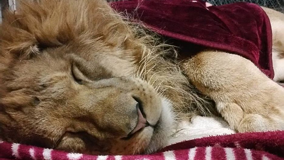 Lew żąda koców do spania. Przyzwyczaił się w domu