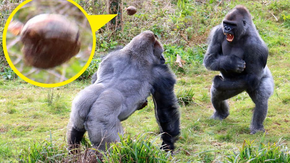 Dwa goryle z Paignton Zoo Environmental Park w Devon pobiły się o pieczonego kartofla. Olbrzymi wegetarianie pokazali, że nie działają w tandemie.