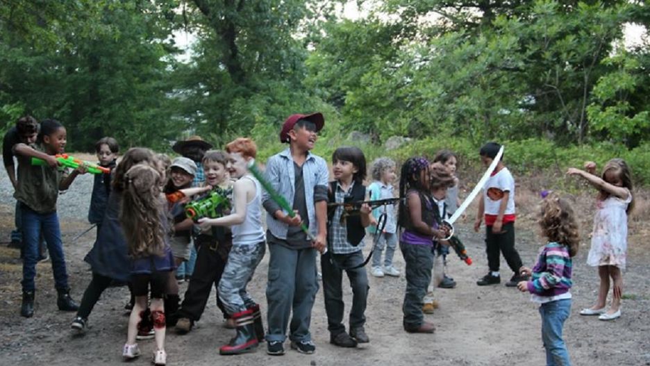 Alana Hubbard uznała, że pełen przemocy serial "The Walking Dead" to świetny pomysł na familijne zdjęcia. Jak pomyślała, tak zrobiła. Swoje dzieci i ich kolegów oraz koleżanki zaangażowała do sesji zdjęciowej z zabijaniem zombie jako motywem przewodnim.