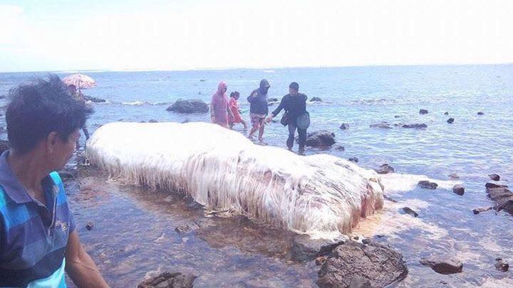 Dziwne stworzenie zostało wyrzucone na plażę Cagdainao na jednej z filipińskich wysp po niedawnym trzęsieniu ziemi. Spotkało się z ogromnym zainteresowaniem mieszkańców, którzy mimo ogromnego smrodu przychodzą i robią sobie selfie.