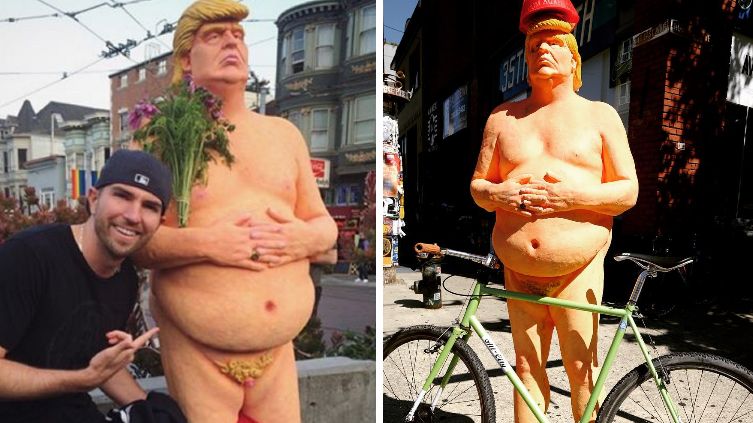Anarchistyczny kolektyw artystyczny INDECLINE wpadł na pomysł stworzenia pięciu figur przedstawiających nagiego Donalda Trumpa. Podobizny naturalnej wielkości stanęły na ulicach pięciu amerykańskich miast: San Francisco, Cleveland, Los Angeles, Seattle i Nowego Jorku.