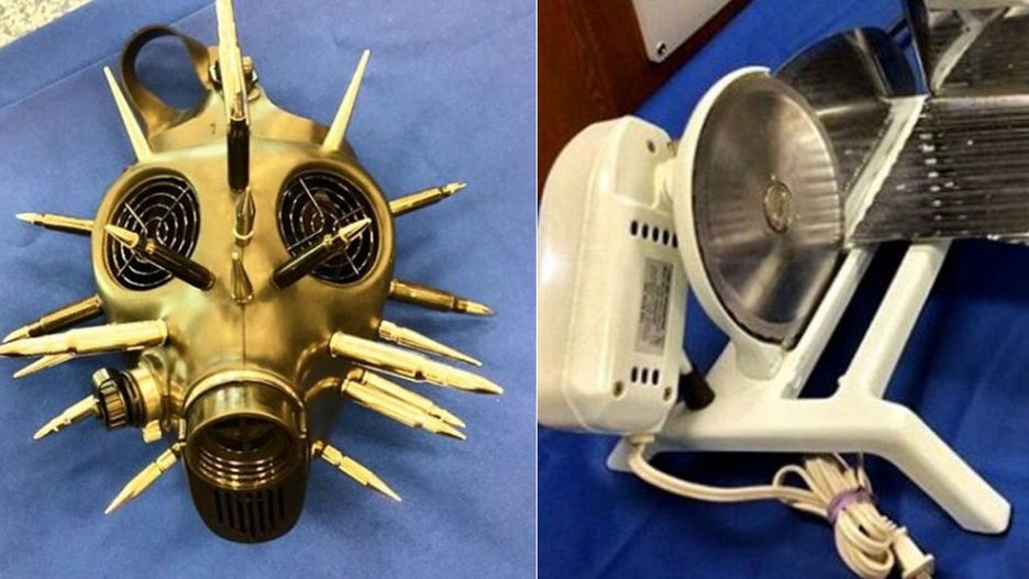 Nie pytamy, po co wieźć krajalnicę do mięsa taki kawał drogi. Zastanawiamy się za to, jakim cudem ktoś zmieścił to w bagażu podręcznym.
