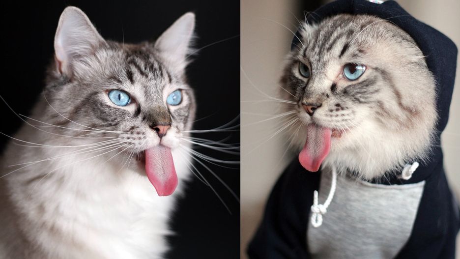 Okazuje się, że kociak ma nieprawdopodobnie długi język.
