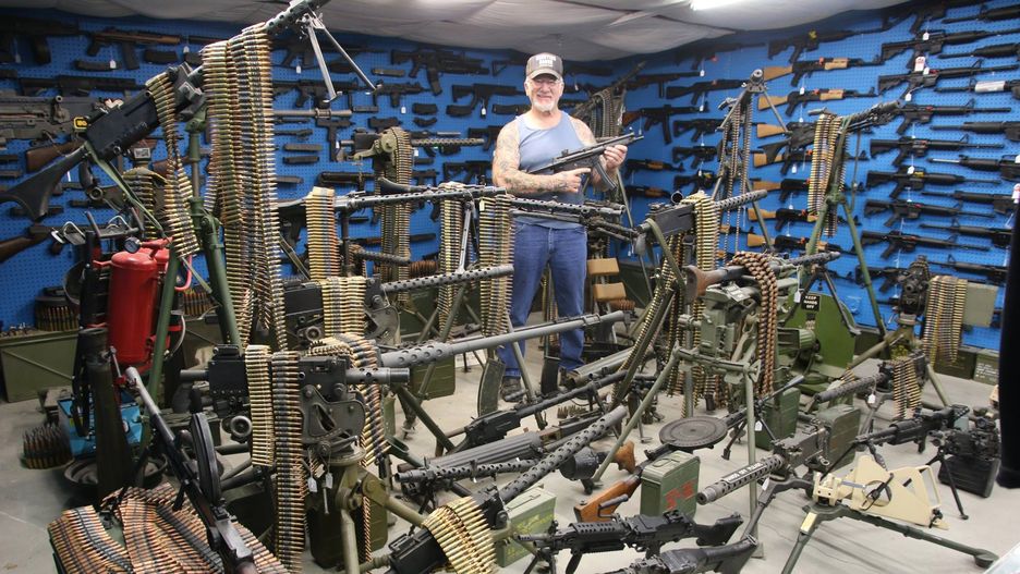Ma też różne współczesne karabiny. Są w pełni sprawne i można z nich postrzelać na strzelnicy, która też jest własnością Mela.