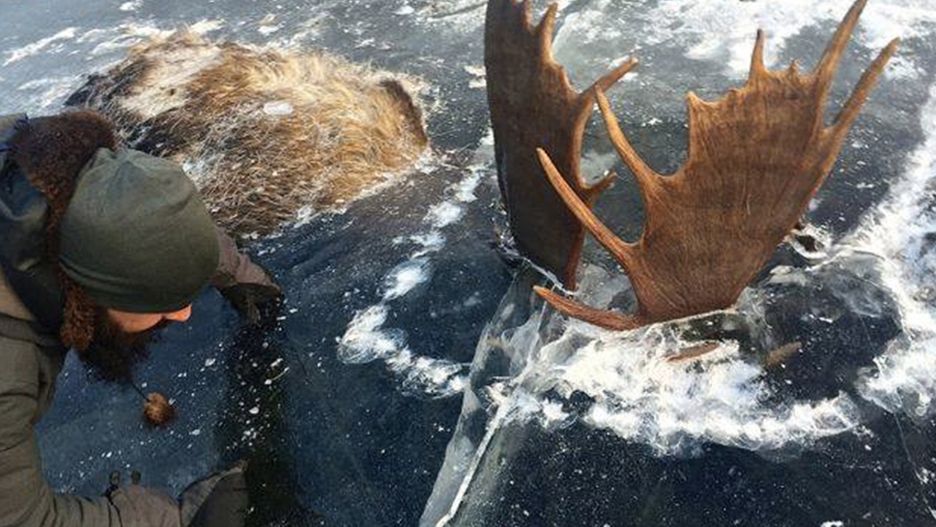 Po zdjęciu z lodu warstwy śniegu oczom myśliwych ukazał się niezwykły widok. Zajęte walką byki wpadły pod lód rzeki North River, ponad 640 km na północny zachód od Anchorage.