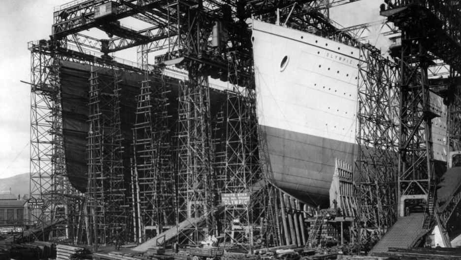 Na zdjęciu poniżej uwieczniono dwa liniowce podczas budowy. Fotografię wykonano w listopadzie 1909 roku w stoczni Harland and Wolff w Belfaście. Jeden ze statków, będący na ukończeniu, to RMS Olympic. Drugi, stojący w tle niczym złowieszczy cień, to znany wszystkim Titanic. Trzecią siostrzaną jednostką był HMHS Gigantic (przemianowany po katastrofie Titanica na HMHS Britannic). Olympic został zwodowany 20 października 1910 roku jako pierwszy z całej trójki i tylko on nie skończył tragicznie. Niewiele jednak brakowało, a podzieliłby los wspomnianych liniowców...