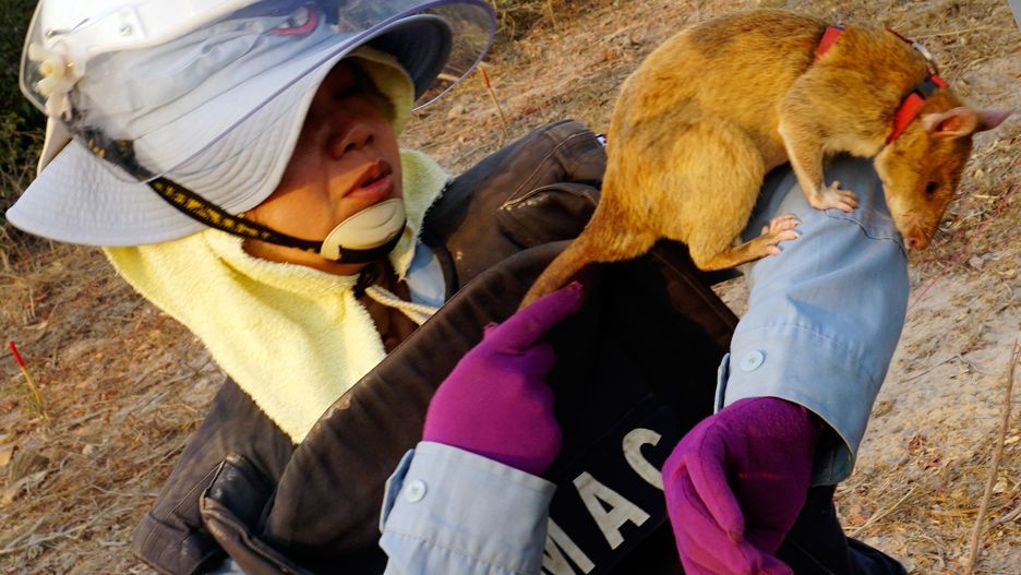 Po każdej porannej sesji Victoria, Cletus i ich koledzy dostają swoje banany i trafiają do klatek. Za programem odminowywania Kambodży z pomocą szczurów afrykańskich stoi belgijska fundacja APOPO (Anti-Personnel Land Mines Detection Product).
