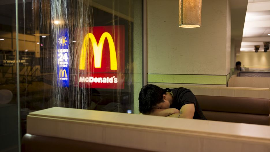 Bary - noclegownie stają się powszechnym obrazkiem w chińskim mieście. O ludziach tam sypiających mówi się McRegugees albo McSleepers (McUchodźcy, McŚpiochy).