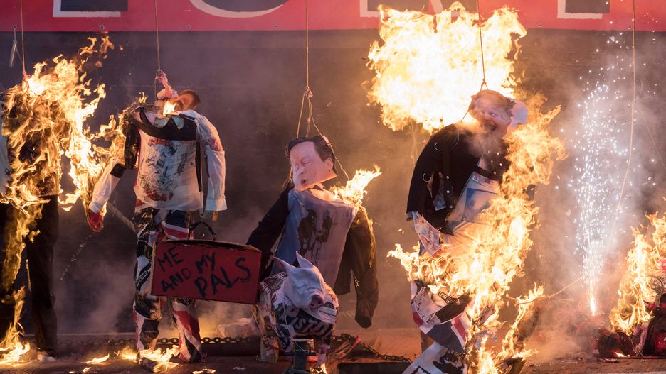 Oprócz pamiątek zapłonęły kukły brytyjskich polityków - Davida Camerona, Theresy May, Borisa Johnsona i George Osborne'a. Część z nich była wypełniona fajerwerkami.