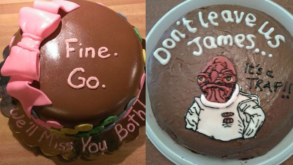 Osoby odchodzące z pracy otrzymują zazwyczaj niewielki pożegnalny prezent lub organizują z tej okazji przyjęcie. Często również niezadowoleni z utraty kolegi współpracownicy wyrażają swoje uczucia poprzez oryginalne i niezwykle sugestywne torty. Jak można się domyślić, w tym przypadku osoba rezygnująca z pracy była programistą i dlatego otrzymała tort z napisem przypominającym ekran z kodem.