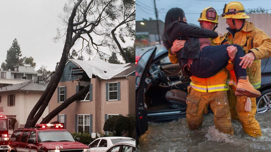 Znad Pacyfiku dotarły nad Kalifornię chmury burzowe. Ulewy, jakie sprowadziły na ten stan, były największe od 1995 roku. W niektórych miejscach podobnych opadów nie notowano od wielu dekad. Jednym z bardziej widowiskowych ale i dramatycznych konsekwencji tych nagłych opadów stały się zapadliska pod ulicami. Powstające nagle dziury wchłaniały nie tylko auta osobowe. W jednym przypadku pod ziemią zniknął potężny wóz straży pożarnej.
