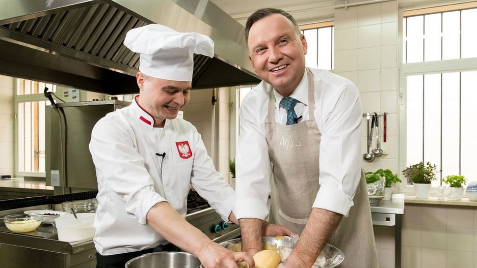 Do sieci trafiły zdjęcia i wideo, na których widać, jak prezydent radzi sobie w kuchni. Andrzej Duda pożyczył od żony fartuszek, na którym wyhaftowane jest imię Agata. Pierwsza Dama otrzymała go od Koła Gospodyń Miejskich Zosie Samosie.