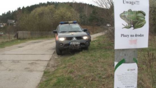 Strażnicy z ekopatrolu interweniują w każdej zgłoszonej sprawie. Przenoszą żaby w bezpieczne miejsca, a na miejscu zostawiają dla kierowców tabliczki informujące o wędrówkach płazów.