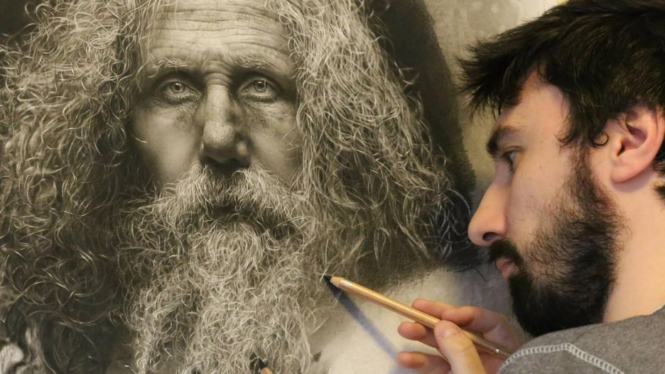 Narysowanie jednego portretu trwa łącznie nawet 780 godzin. Emmanuele tworzy każdy z nich, używając węgla i grafitu.
