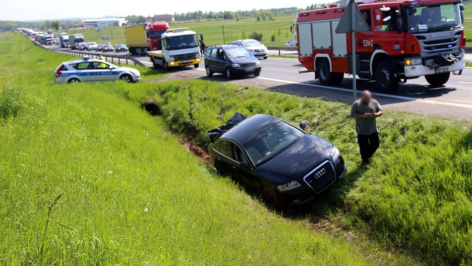 Należące do Biura Ochrony Rządu audi A6 wylądowało w rowie przy drodze krajowej nr 1 niedaleko Częstochowy. Wepchnęła je tam ciężarówka, która uderzyła w tył pojazdu.