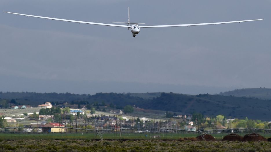 Na zdjęciu Perlan 2 ciągnięty przez mały samolot jednosilnikowy. Po zwolnieniu holu zadaniem pilota było wznieść się ponad górskie szczyty.