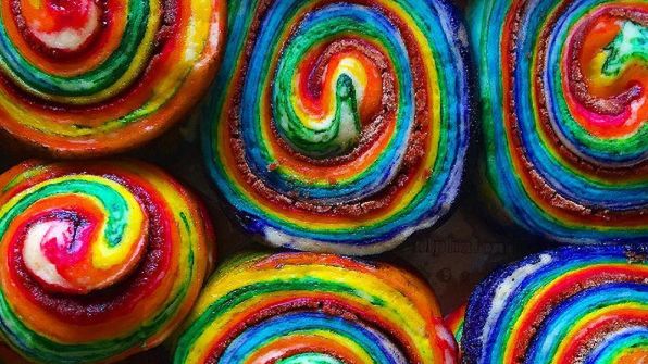 Bułeczki cynamonowe. Cynamonowy kok. Muszla cynamonowa. Tyle nazw, ale w wersji "tęcza" to po prostu kawałek nieba. Tylko, czy smak cynamonu przeżył wśród barwników?