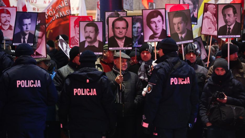 Hymnem Polski i hołdem dla ofiar stanu wojennego rozpoczęła się demonstracja Prawa i Sprawiedliwości. Zwolennicy partii Jarosława Kaczyńskiego zebrali się na Placu Trzech Krzyży chwilę po tym, jak marsz KOD dotarł pod siedzibę PiS przy ul. Nowogrodzkiej.