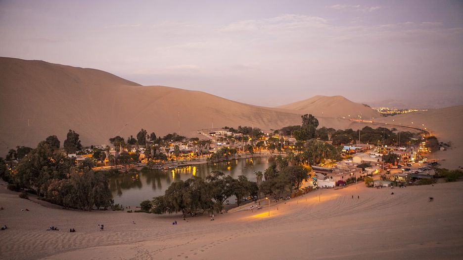 Tak niezwykły widok można podziwiać na peruwiańskiej pustyni. Maleńka osada z gajem palmowym, kawiarniami i przyciętymi trawnikami musi zachwycać. Mieszka tu zaledwie sto osób. Dziś miejscowość słynie z sandboardingu.
