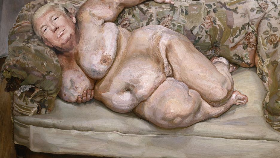 Trump idealnie wpasował się w nastrój towarzyszący obrazowi "Benefits Supervisor Sleeping" Luciana Freuda.