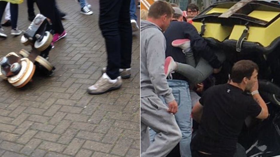 Na jednym ze zdjęć wyraźnie widać dziewczynkę uwięzioną w wagoniku kolejki. Jako pierwsi pomocy uwięzionym zaczęli udzielać goście parku. Po chwili zjawili się ratownicy.