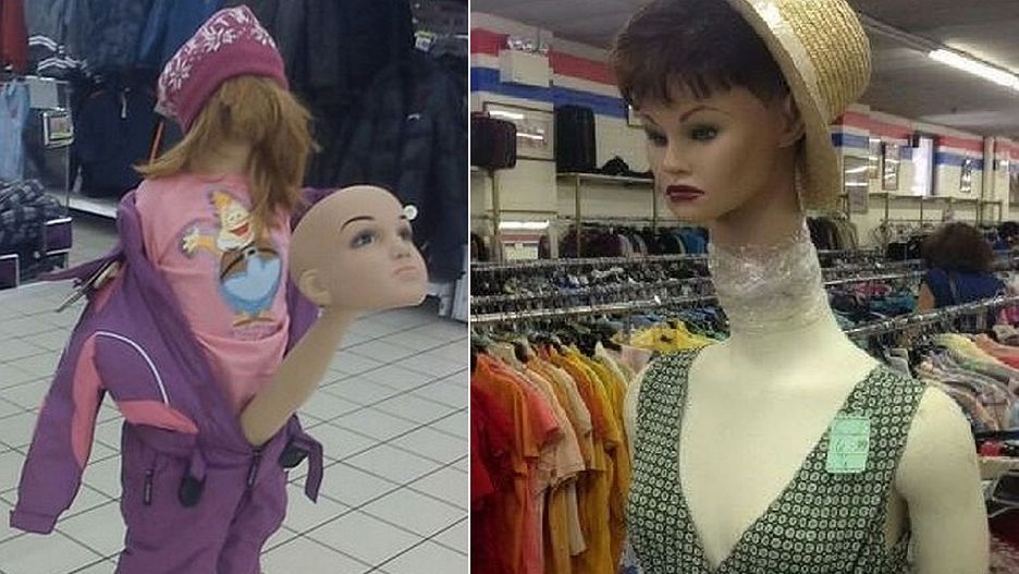Niektórzy uważają, że manekiny same w sobie są przerażające. Małe dzieci często się ich boją. Jakby tego było mało, specjaliści od marketingu i PR prześcigają się w tworzeniu realistycznie wyglądających ludzkich podobizn. Jednak nie zawsze się to udaje. Niektóre witryny sklepowe przypominają postaci jak z horrorów. Aż strach robić zakupy.