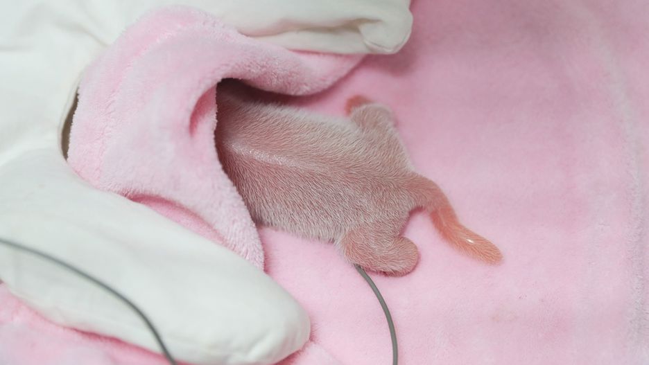 Młoda samiczka pandy w chwili narodzin ważyła 135 gramów. Jej brat, który przyszedł na świat 9 minut później, był o 13 g cięższy. Zwierzęta muszą karmić opiekunowie, którzy boją się, że maluchy mogłyby zostać przypadkiem zmiażdżone przez matkę.