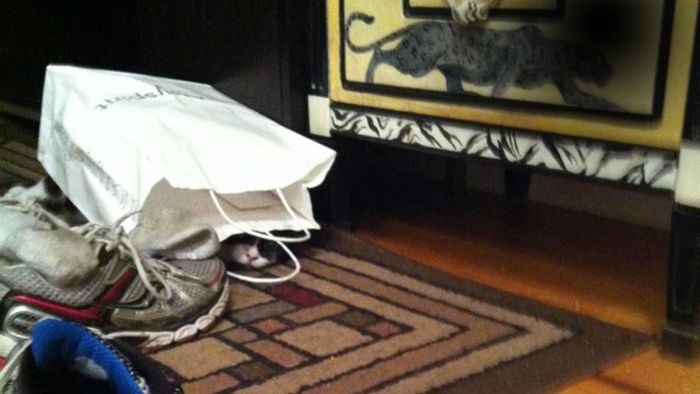 Brawo za pomysł na kryjówkę. Tutaj na pewno nie spodziewalibyśmy się kota.