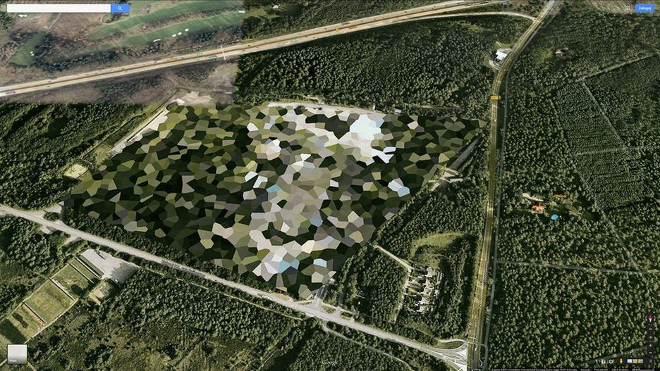 Świetnie widoczna z poziomu Street View, jednak na mapie satelitarnej w dość dziwny sposób "przykryta" trawą.
