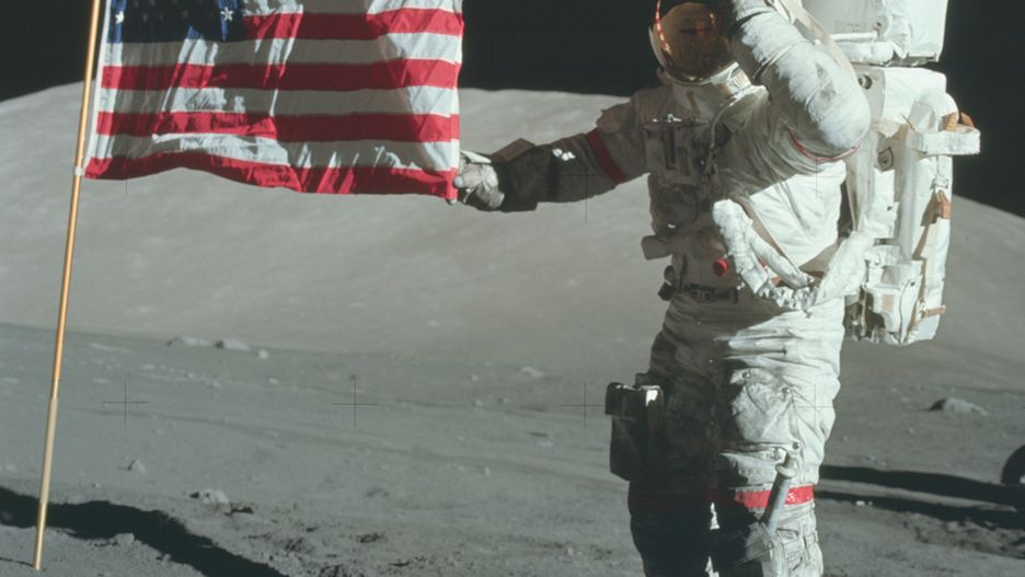 Zdjęcia z flagą USA były stałym punktem programu każdej misji. Idealne dla działu PR.