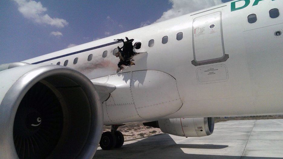 Samolot airbus A321 somalijskich linii Daallo Airlines (lot D3159) brał udział w niebezpiecznym zdarzeniu. Tuż po starcie z Mogadiszu na pokładzie maszyny doszło do eksplozji. Na szczęście pilot zdołał wrócić na lotnisko. Na zdjęciach odrzutowca widoczna jest wyrwa w prawym boku nad skrzydłem.
