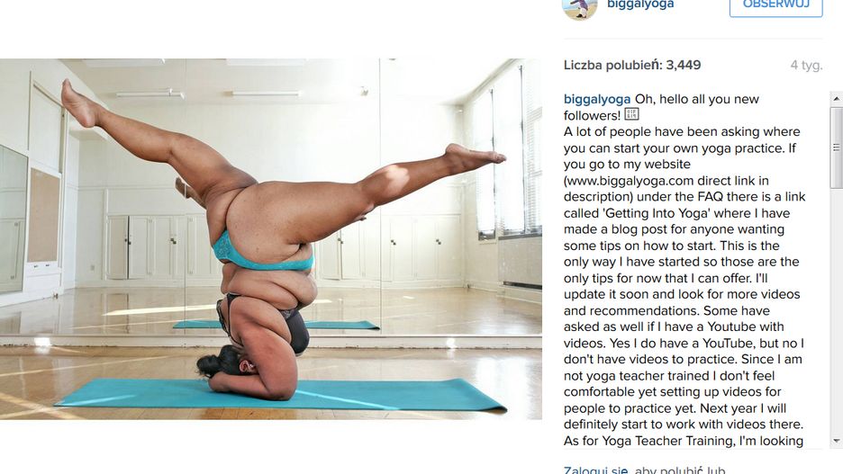 Będę pokazywała mój tyłek, tyle ile będę chciała - pisze na swoim Instagramie jako "biggalyoga".