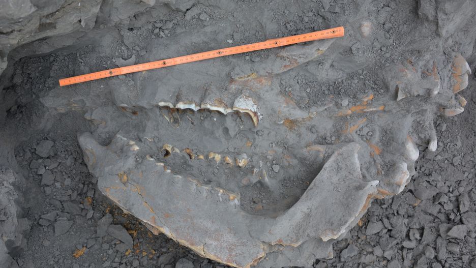 Naukowcy potwierdzają, że to pierwsze takie odkrycie w Polsce. Na zdjęciu widoczna jest odsłonięta częściowo szczęka zwierzęcia.