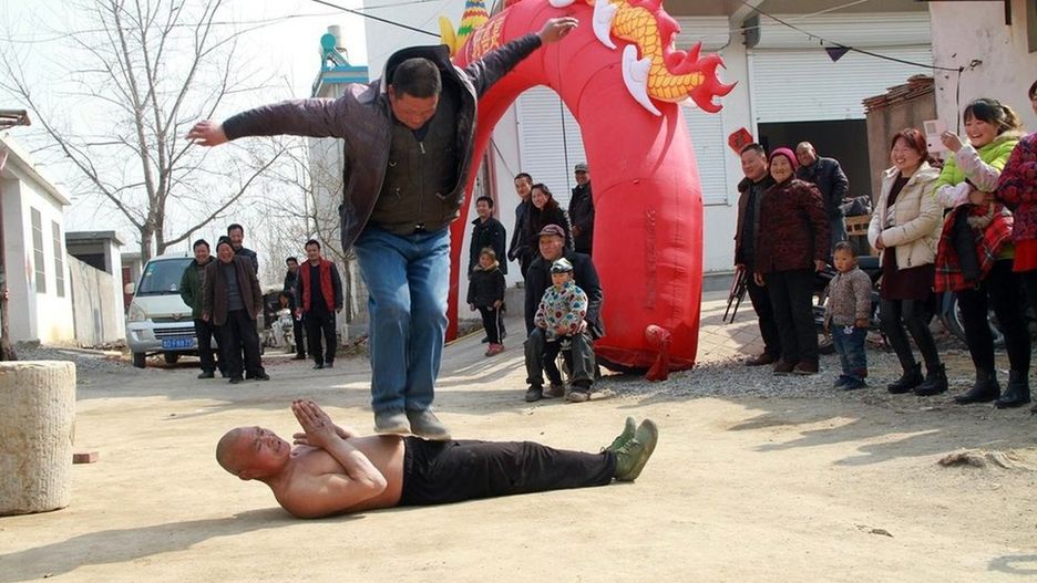 Mocarny Chińczyk twierdzi, że ani ciężki kamienny blok, ani osoby skaczące po brzuchu, nie są w stanie wyrządzić mu krzywdy. Wszystko dzięki tajemniczej sile "qi", która zapewnia mężczyźnie moc oraz wytrzymałość.