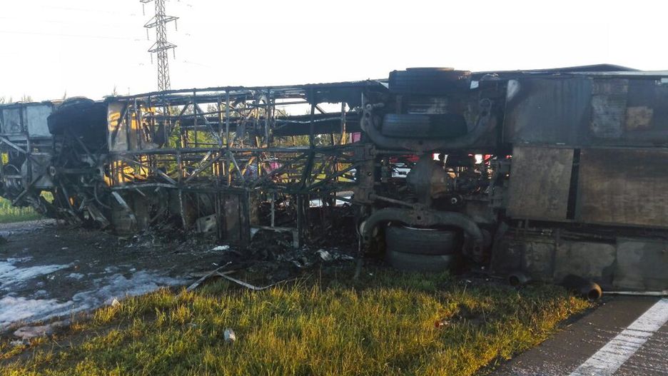 Autobus przerwócił się i zaczął płonąć. 13 pasażerów zginęło na miejscu. 15 zostało rannych, jednak potem poinformowano, że liczba ofiar śmiertelnych wzrosła do 14.